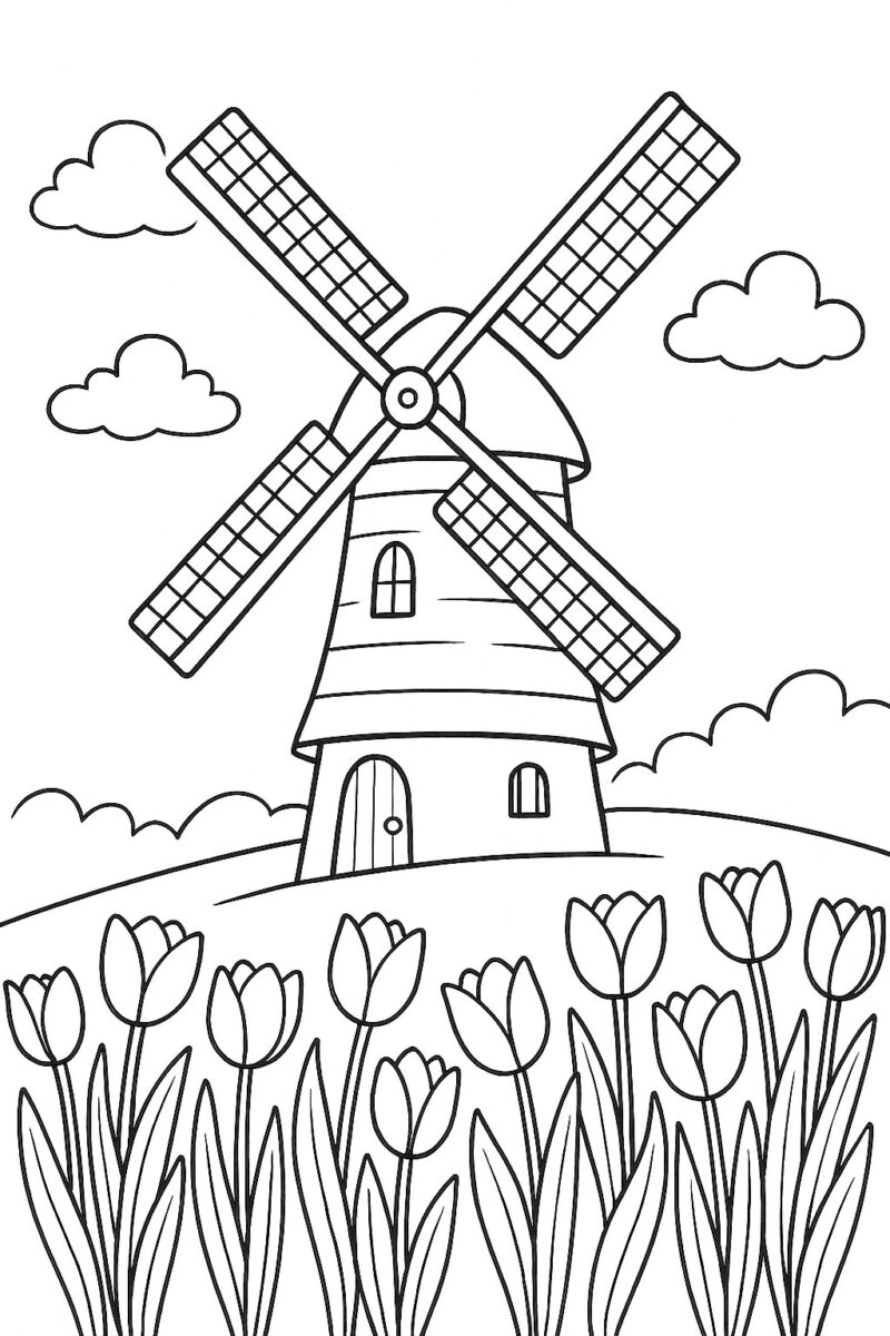 Zadanie dla młodszych: pokoloruj obrazek typowy dla Holandii.